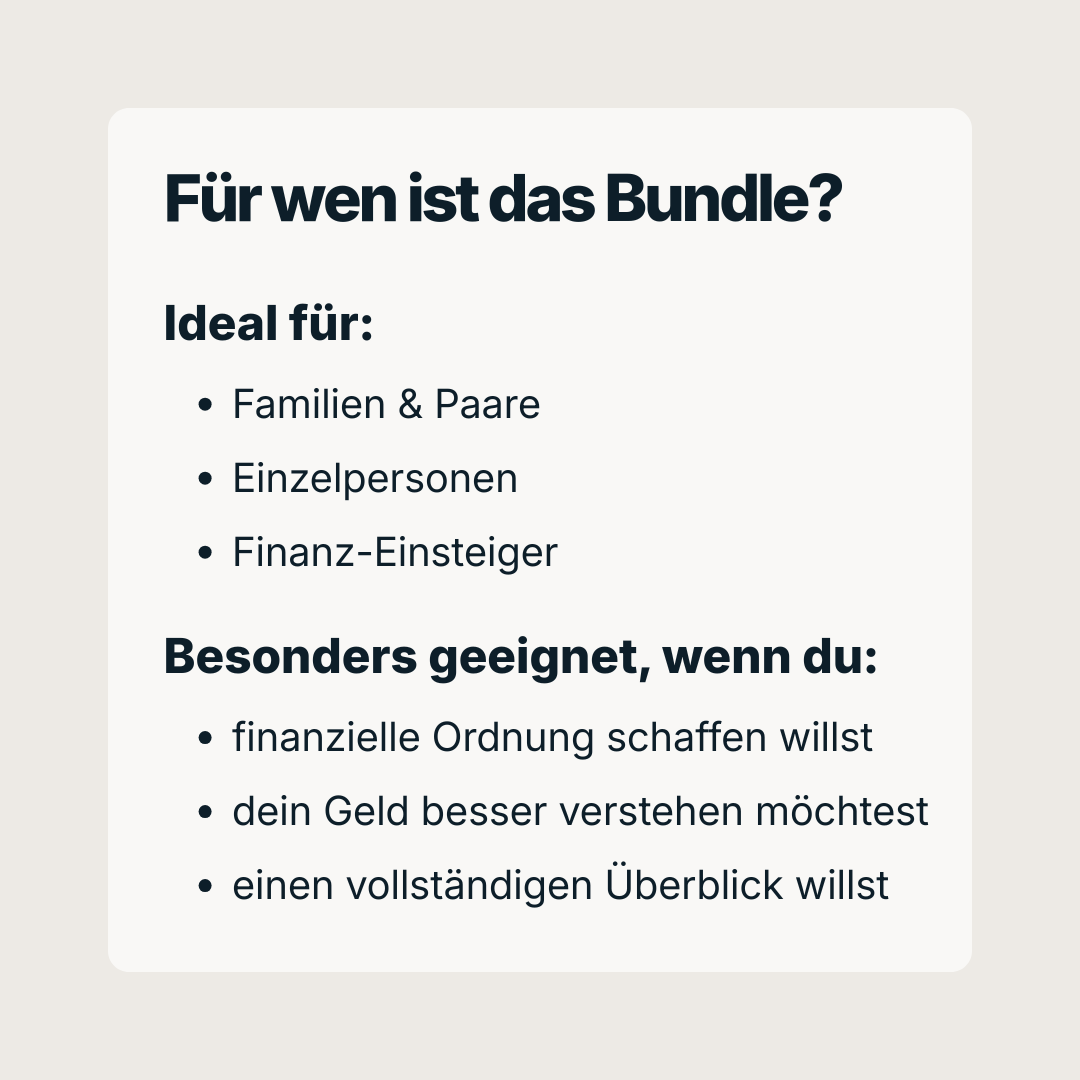 Ideal für Paare, Familien und alle, die ihre Finanzen endlich im Griff haben wollen – ohne App-Zwang.